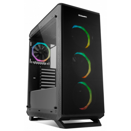 Sistema de ventilación Para refrigerar de manera eficiente todos los componentes de nuestra configuración, Hummer TGF cuenta con capacidad para instalar hasta seis ventiladores. En su panel frontal incluye tres ventiladores de 120 mm con ARGB Rainbow, uno en su panel trasero también de 120 mm con ARGB Rainbow pero además es posible instalar dos ventiladores más de 120 mm o 240 mm en su panel superior. Además, cuenta con rejillas en su frontal que permitirán que el aire frío entre en el interior del PC que se expulse por sus rejillas superiores.